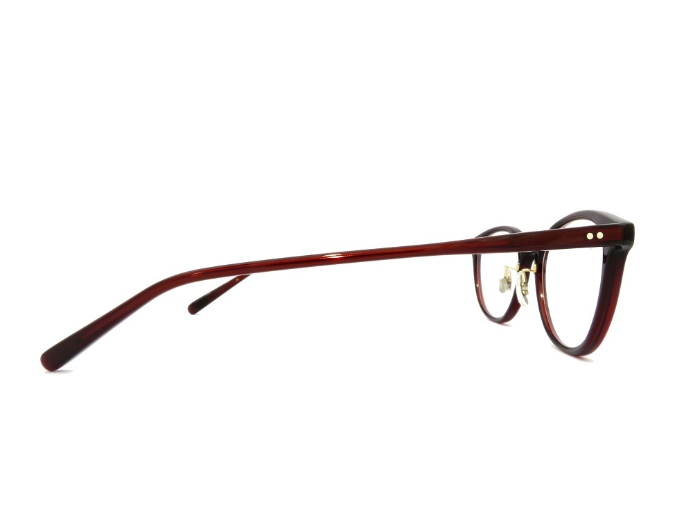 シンプルで細身のキャットアイシェイプのプラスティックフレームです。