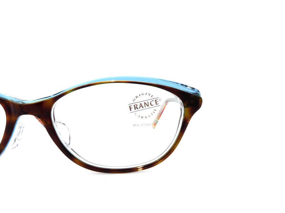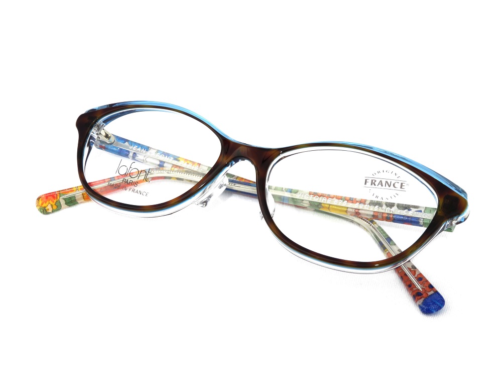 フロント上部に段付きのカッティングをほどこして層になったアセテート生地の色味を正面から見せる手法はラフォンの得意とするデザインの1つです。
