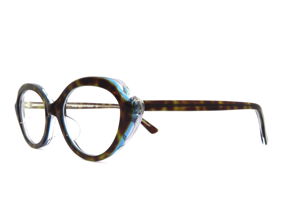 1970年にフランス・パリを拠点として設立されたアイウェアブランドです。デザイナーはフランシス・クライン氏がつとめ、「メイクのように女性を引き立てるメガネ」というブランドコンセプトのもとで「Made in France」のハンドメイドフレームは強い独創性と幻想性を持った魅力的なジュエリーという位置づけとなっています。色彩豊かなプラスティック素材にスワロフスキー、レース布生地、植物の葉脈などを埋め込んだりラミネーションをほどこしたコレクションもあり、そのどれもがエレガントかつキュートなアイテムです。