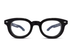 ボストン型を縦に潰したオーバルにも似た絶妙なレンズシェイプが最大の特徴で、しっかりと構えた存在感をと感じさせながらも全体的な丸みを活かした仕上がりにすることで顔に程よく馴染ませるアイテムとなっており、また掛け応えのある幅広のテンプルなども含めてJ.M.M.の得意とする上品かつクラシカルなスタイルは永遠に受け継がれるアイコンとも言えます。
