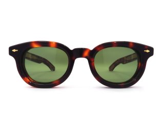 ボストン型を縦に潰したオーバルにも似た絶妙なレンズシェイプが最大の特徴で、しっかりと構えた存在感をと感じさせながらも全体的な丸みを活かした仕上がりにすることで顔に程よく馴染ませるアイテムとなっており、また掛け応えのある幅広のテンプルなども含めてJ.M.M.の得意とする上品かつクラシカルなスタイルは永遠に受け継がれるアイコンとも言えます。