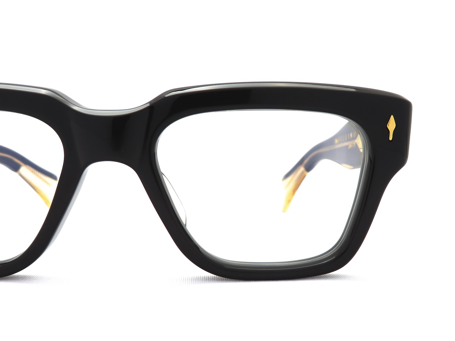 構えの鋭い直線的なラインを巧みに用いて敢えて強調させたデザインは厚リムのフロント、幅広のテンプルというクラシックウエリントンの原則を保持しながらも既存のカテゴリに収まらないJ.M.Mらしい独自のスタイルが魅力的です。