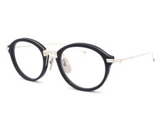 THOM BROWNE.のアイウェアコレクションにおいて普及の名作と呼ばれるコンビネーションモデルです。数多く存在するボストン型フレームの中でも絶妙な縦横比で描かれたレンズシェイプを厚みのあるアセテートフロントリムと細身のチタンテンプルによってモダンクラシックなイメージを放つアイテムに仕上がっています。