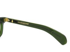 また、J.M.Mの特徴的なパドルテンプル(※小舟で使用する櫂のような見た目をしたエンドまで幅広のテンプルパーツの呼称)を採用しています。完成したフォルムの全体像はアメリカ・N.Y創業のTART OPTICALの名作『F.D.R』を彷彿とさせ古典へのオマージュが感じられ、そこにJ.M.Mの象徴でもあるアローヘッドやカスタムリベットによってその名に見合う高級さを確保しています。