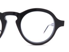 フレンチヴィンテージフレームをオマージュしたようなパントシェイプのセルフレームモデルです。ラウンドフレームのようなテンプル位置を持った全体像にパント型ではやや大きめでモダンな印象を作る縦長のレンズシェイプ、そして高めのキーホルブリッジを組み合わせるというクラシックかつアイコニックなイメージを詰め込んだデザインでありながら実際に掛けてみると意外なほど「しっくり」顔に馴染むアイテムです。