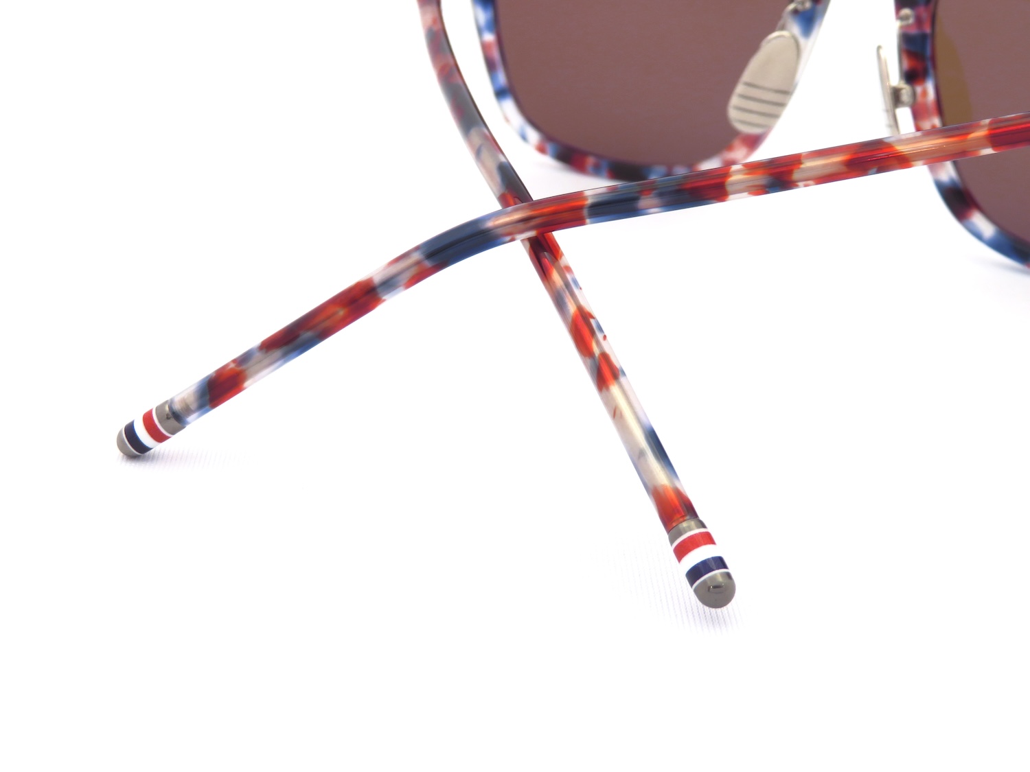 "4 Bar"の意匠をほどこしたヒンジパーツ・チタンノーズパッドの他、エンドチップには星条旗カラーを示すトリコロールで耳元を飾るなどの細やかなディティールを各所に散りばめることでハイエンドなフレームでありながらさりげないお洒落を楽しめます。