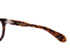 縦幅がやや大きめのウエリントンをベースに持ちながらもレンズシェイプは非常に強いラウンドを与えることで1960年代のヨーロピアンクラシックさを感じられるデザインです。フロントのレンズ外周部をテレビジョンカットのような斜めの掘り込みを加えて表情に奥行きを出しながらも最適かつ適度なボリュームさを残したリム(縁)デザインやエッジを立たせない全体像、ブロウラインの絶妙な落とし方などによって非常に顔馴染みが良いアイテムです。丁寧なカッティングと仕上げによって磨かれた10mm厚の特注アセテート生地から繰り出される大胆さと質感は他を圧倒するほどの存在感が魅力の1つとなっています。