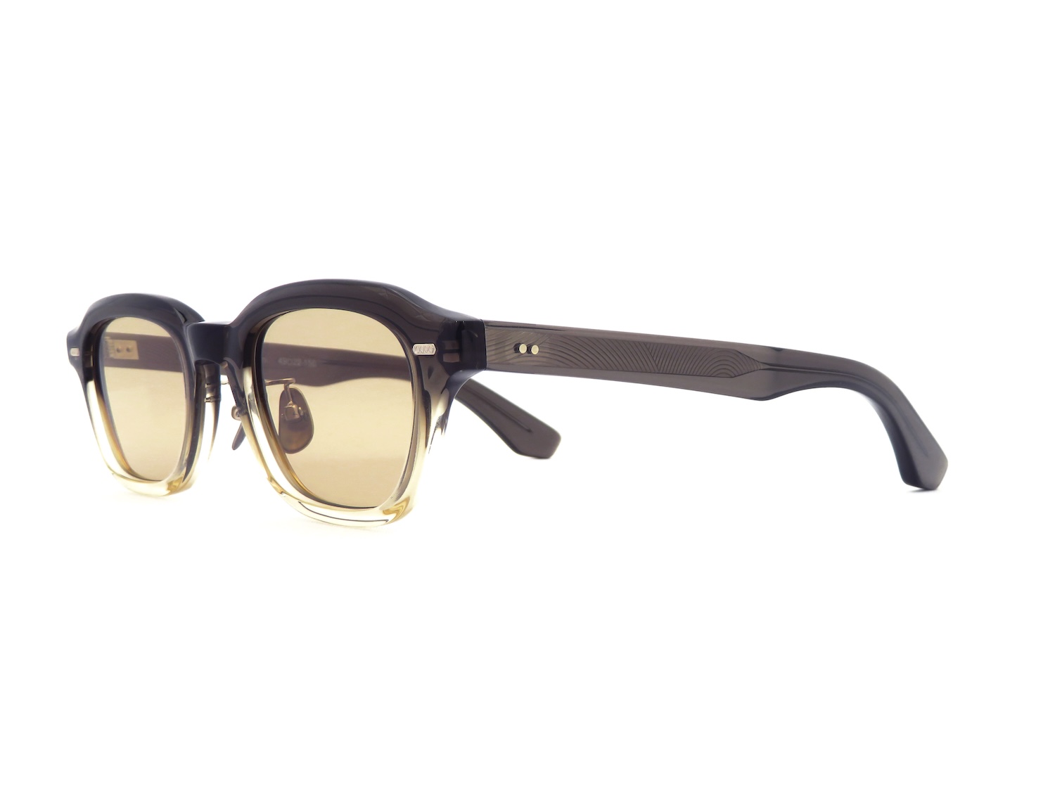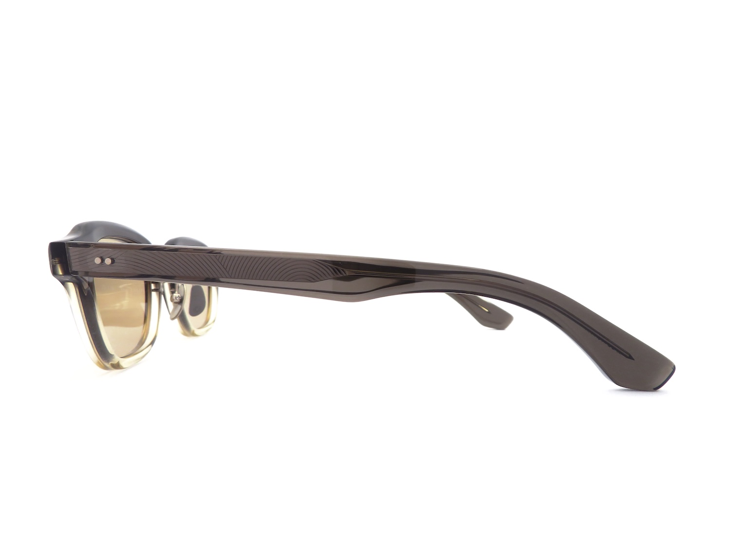 フレーム上下幅を抑えてはいるもののスクエアシェイプのようなシャープなイメージにならないようにデザインされたウェリントンシェイプモデルです。絶妙な太さのリム(縁)上下に面カットを施し、智(ヨロイ)の位置を少し下げることでクラシカルフレームにありがちな野暮ったい印象も取り除かれモダンなデザインに仕上がっています。