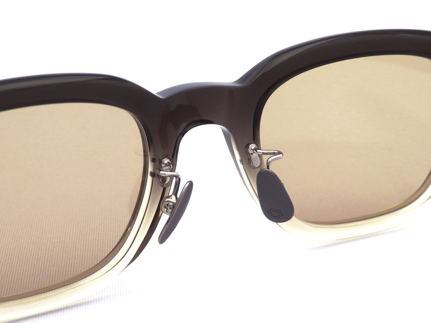 装着感にこだわったテンプルは、丁番部分の「3.5mm」からテンプルエンドに向かって「6mm」へと厚みに抑揚をつけることで枠全体の比重バランスを考慮した設計のため、見た目に反して非常に軽やかでフィット感の良い掛け心地も魅力的です。