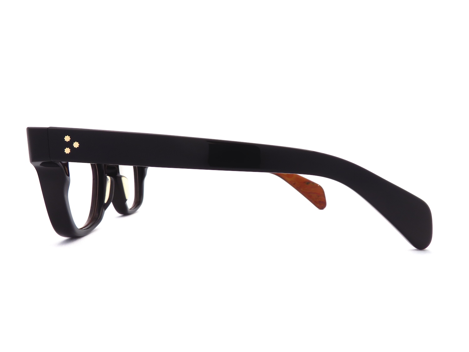ストレートラインを多く取り入れた小ぶりなウエリントンシェイプはキーホールブリッジを備え、ヴィンテージの風合いを保ちながらも10mm厚のアセテートブロック生地にほどこされた丁寧なカッティングによってハンドメイド特有の堅さが取れた現代的なモードに取り入れ易いスタイルのアイテムに仕上がっています。
