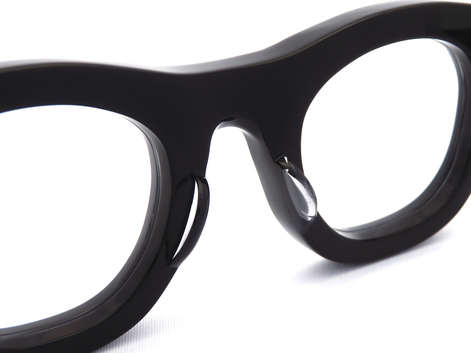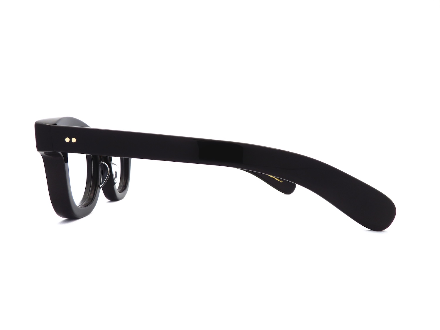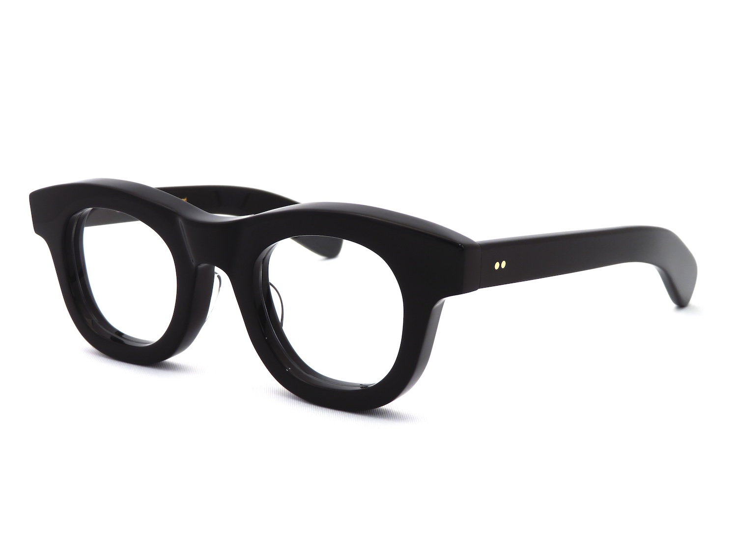 最小限のカッティングを加えたフロントは8mm厚のアセテート生地を使用しているものの体感10mm厚と見紛うほどのボリューム感と屈強な10金を使用した丁番、そして舟を漕ぐ櫂(かい)に見立てた幅広の「パドルテンプル」との組み合わせなどのディティールへのこだわりもヴィンテージデザインが好きな人には非常に魅力的なポイントです。