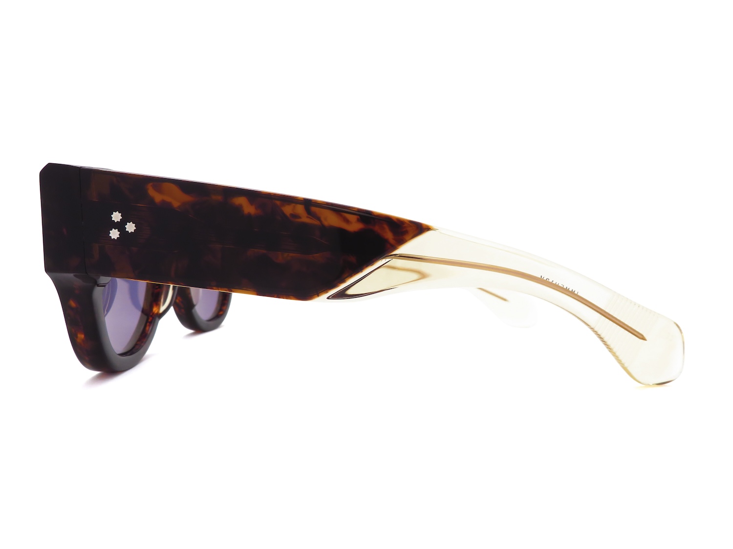 フランス出身のデザイナー、ジェローム・ジャック・マリー・マージュ氏が2015年にアメリカのロサンゼルスを拠点に起ち上げたアイウェアブランドです。約20年に渡りアクションスポーツや時計、ジュエリーと言ったラグジュアリープロダクトのディレクションを経ており、発表当初から瞬く間に多くのファンを獲得しブランドの地位を確立しました。JMMの魅力は厚く重厚なフレームと高品質な素材を用いて丁寧にクラフトされた圧倒的な存在感。ヴィンテージを基調としながらも遊び心を忘れない独自のフレームデザインは世界中を探しても中々見つけることができません。また、矢をモチーフとしたリベットや特別なヒンジパーツといったディティールにも一切の妥協を許さないブランドの姿勢が一目で理解できます。