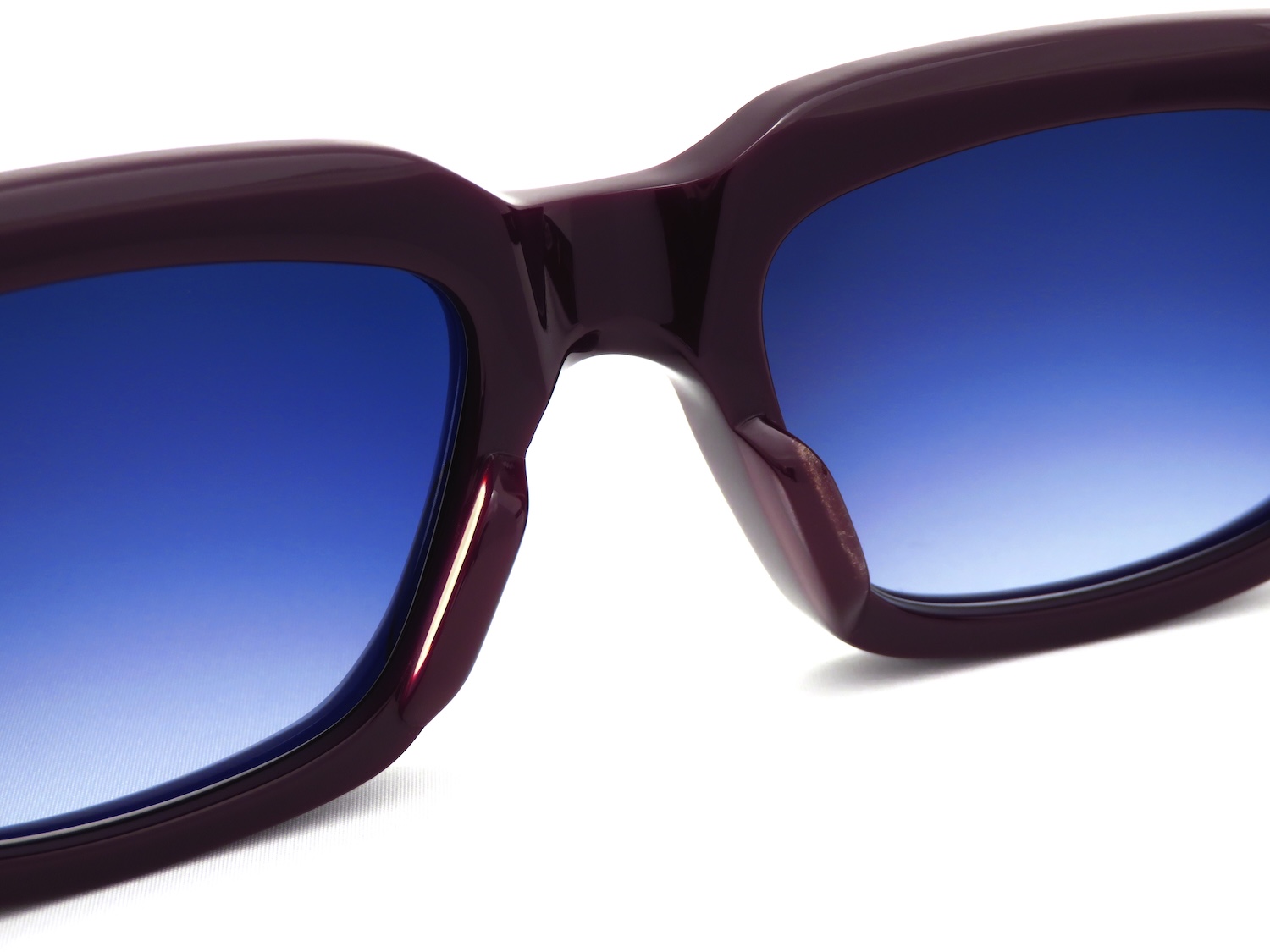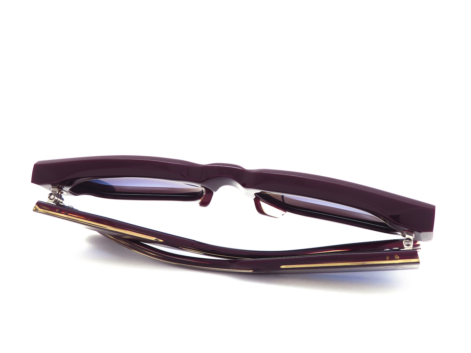 10mmアセテート生地を活かした正面の強めなテレビジョンカッティングによる存在感を出しながらテンプルエンド部をすっきりとさせることで掛け心地の良いメガネに仕上がっています。