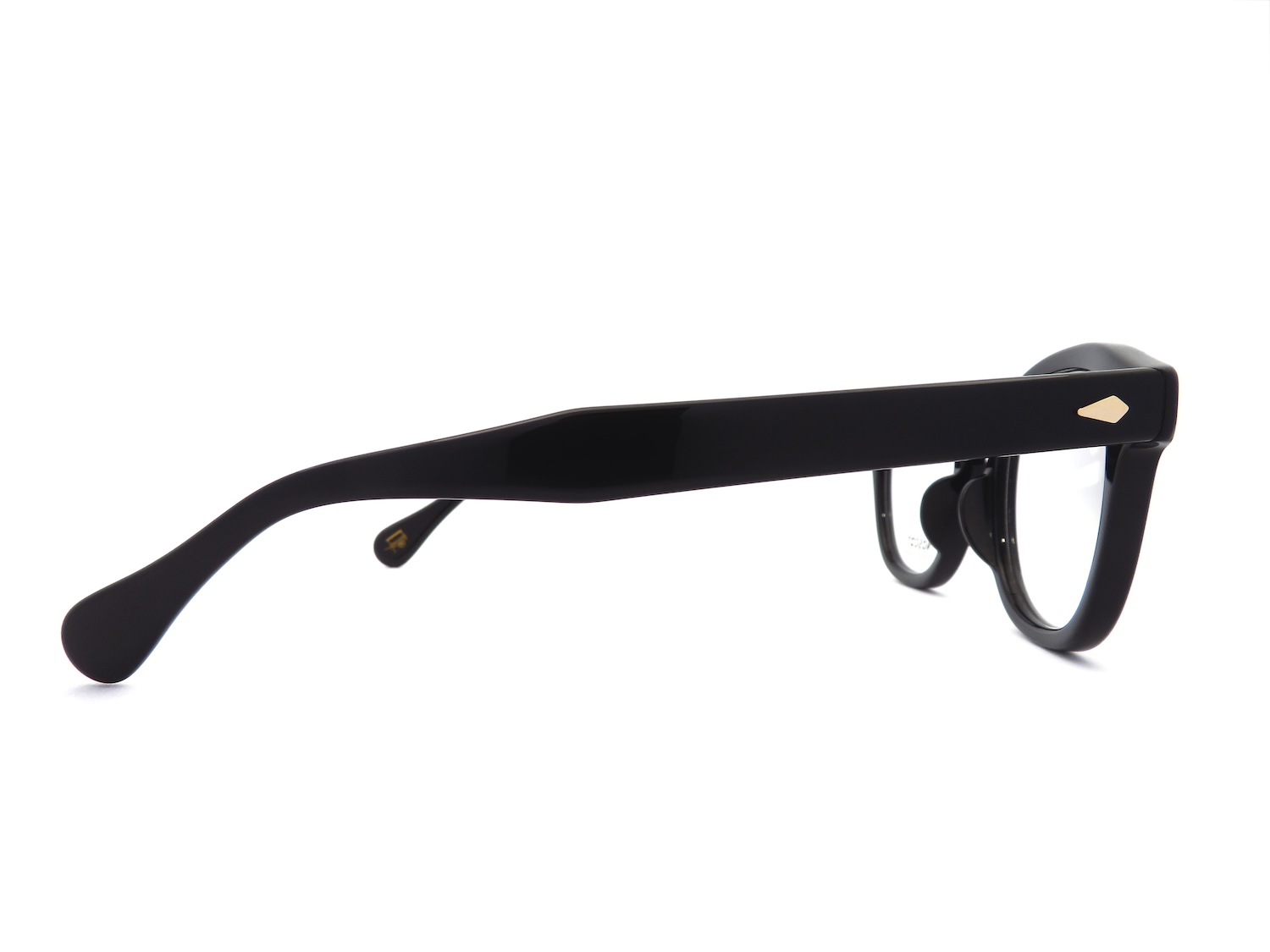 また、本作は"日本限定モデル第19弾"として2025FWに発売された限定モデルです。『LEMTOSH』初となるブリッジ幅(=レンズ間距離)「22mm」のスタイルと高めのコートノーズパッドを採用することでオリジナルよりも非常にフィット感の良くなっている他、元々丸みのあったシェイプデザインがより強調されることで1940年代風のボストン寄りのデザインとなっているところも新しい魅力を備えたアイテムです。また、ヨロイとテンプルにはリベット打ちされたゴールドのカシメ飾りがあしらわれているところも高級感のあるアイテムに仕上がっています。