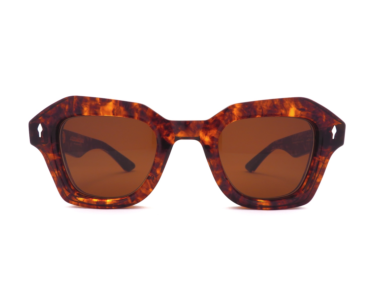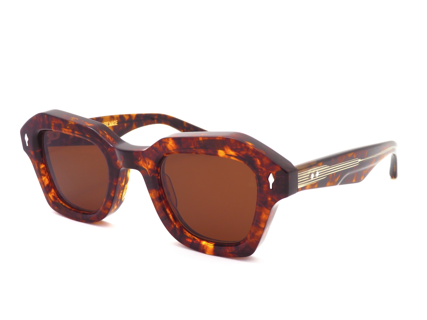 フランス出身のデザイナー、ジェローム・ジャック・マリー・マージュ氏が2015年にアメリカのロサンゼルスを拠点に起ち上げたアイウェアブランドです。約20年に渡りアクションスポーツや時計、ジュエリーと言ったラグジュアリープロダクトのディレクションを経ており、発表当初から瞬く間に多くのファンを獲得しブランドの地位を確立しました。JMMの魅力は厚く重厚なフレームと高品質な素材を用いて丁寧にクラフトされた圧倒的な存在感。ヴィンテージを基調としながらも遊び心を忘れない独自のフレームデザインは世界中を探しても中々見つけることができません。また、矢をモチーフとしたリベットや特別なヒンジパーツといったディティールにも一切の妥協を許さないブランドの姿勢が一目で理解できます。