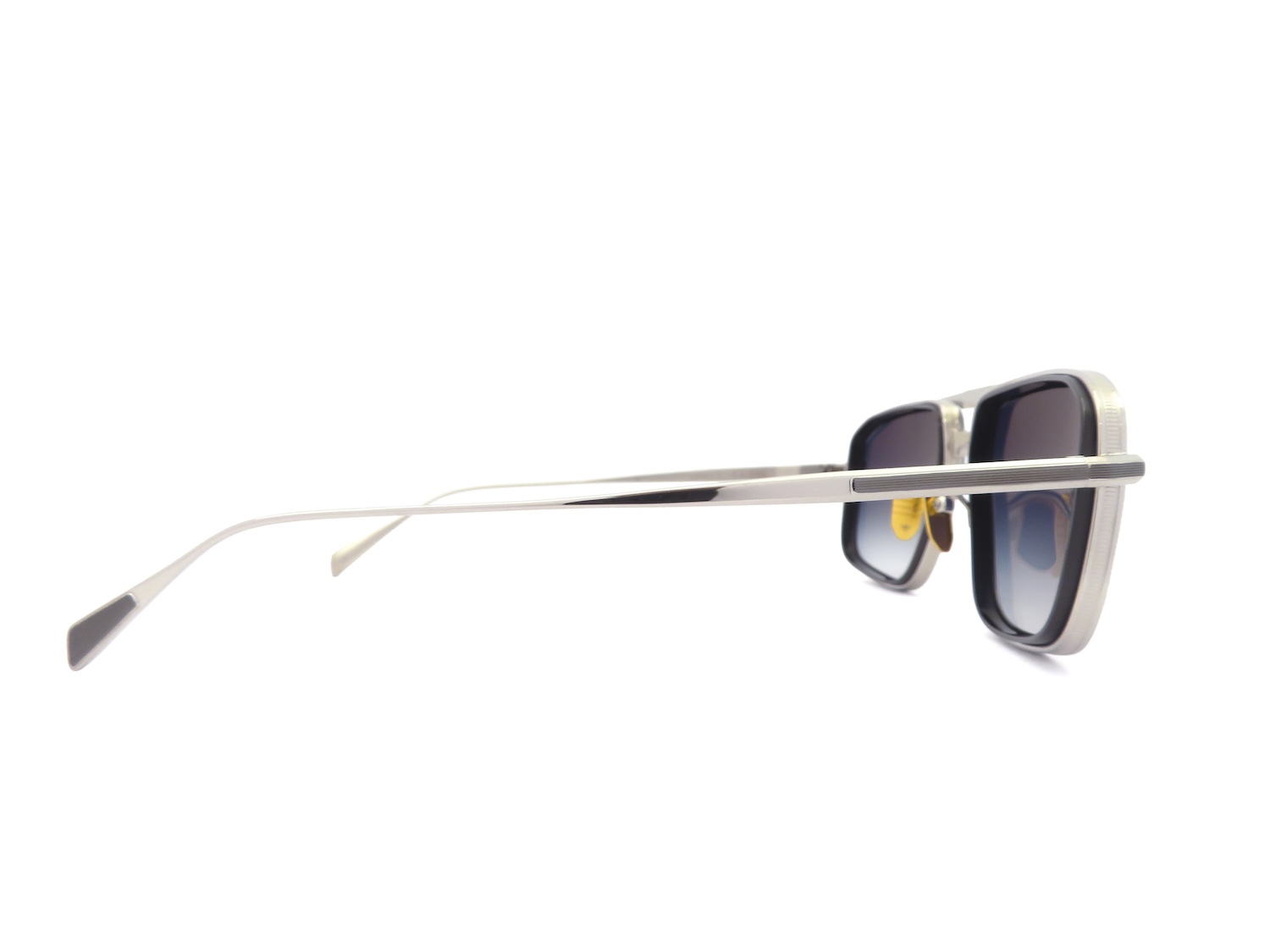 1970年代からインスパイアされた大ぶりのナビゲーター(ツーブリッジ&スクエアシェイプ※1)スタイルのサングラスモデルで、比較的クセの強いモデルが多いJ.M.Mのルーブリッジアイテムの中でも純粋な格好良さとクラシックさのバランス、シンプルさが程よく調和した魅力的なデザインです。
