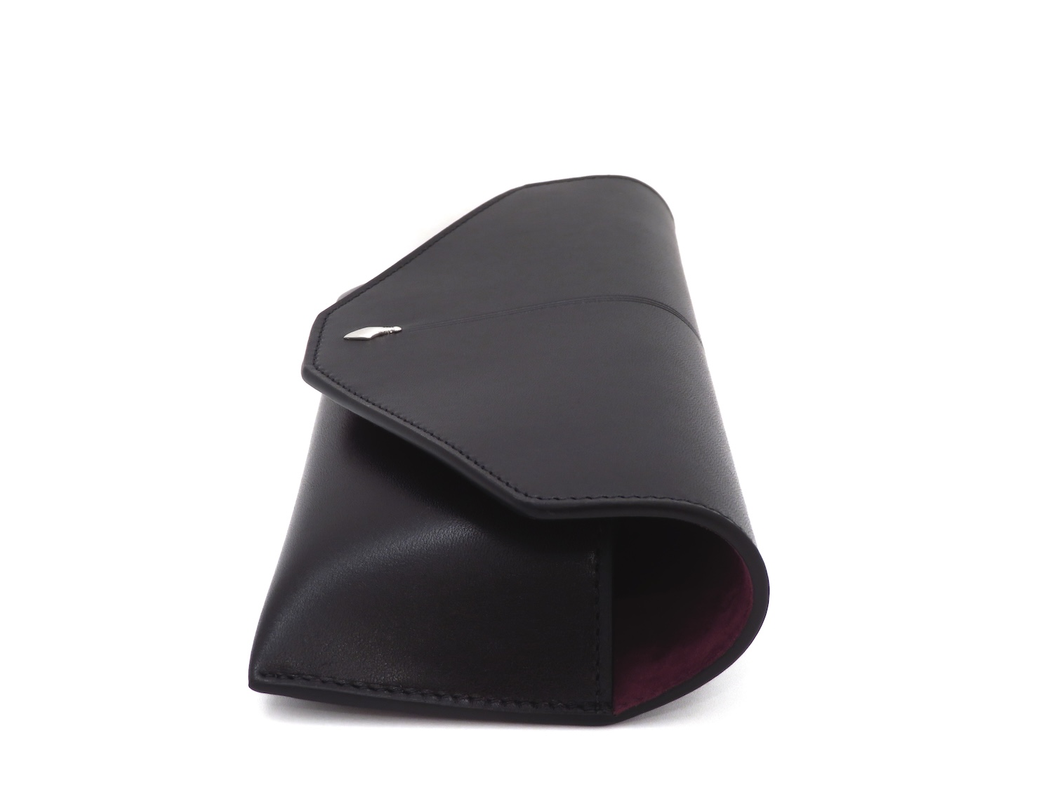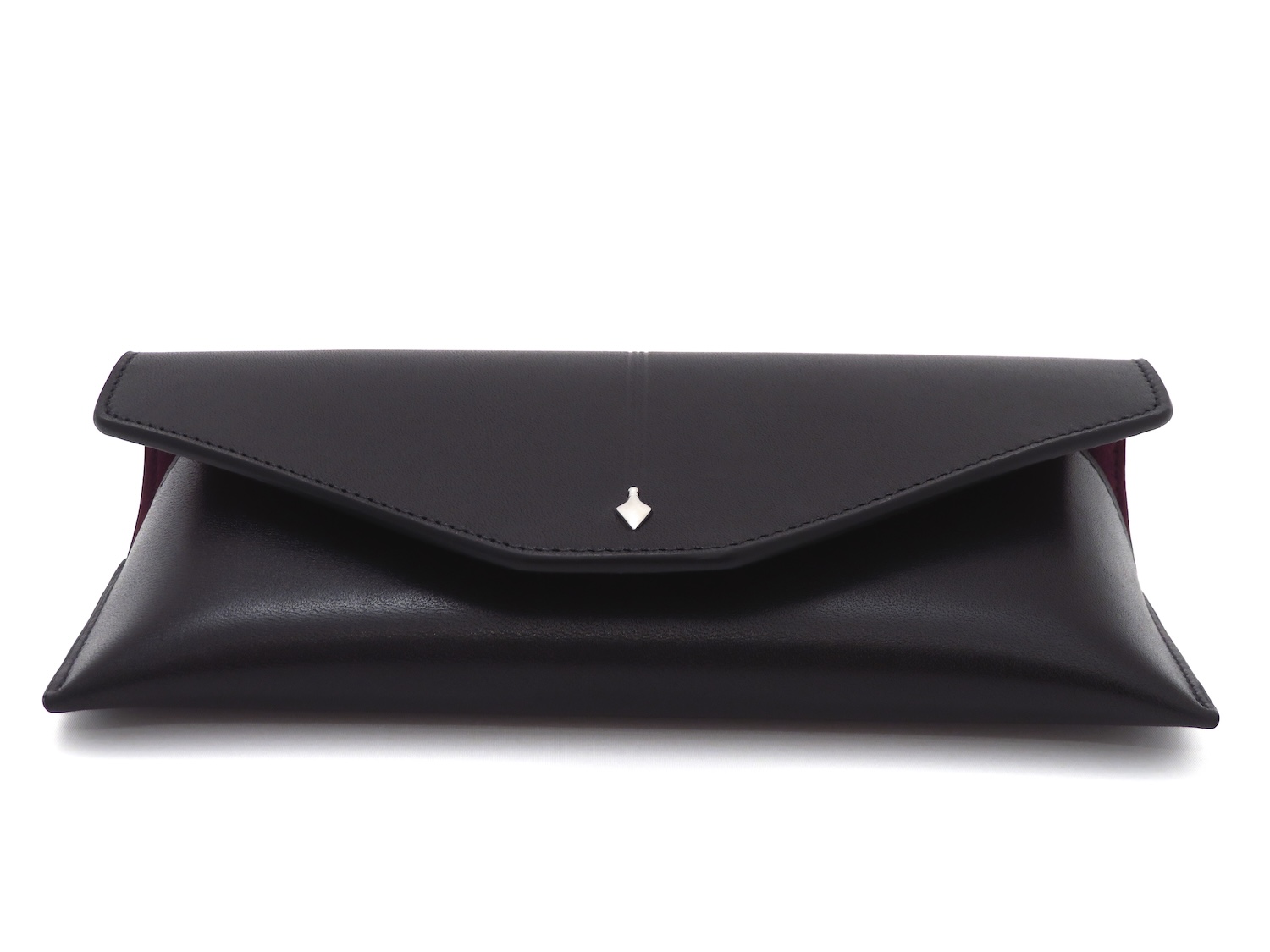"Leather Collection"の1つとしてリリースされたアイウェアコレクションがしっかりと収まるサイズで封筒を思わせるフラップ構造を採用したエンベロープ型デザインのケースです。ケース外側はカウスキン(牛革)を、内側にはスエードキッドスキン(子山羊革)を用いることでアイウェアを優しく包み込み保護します。
