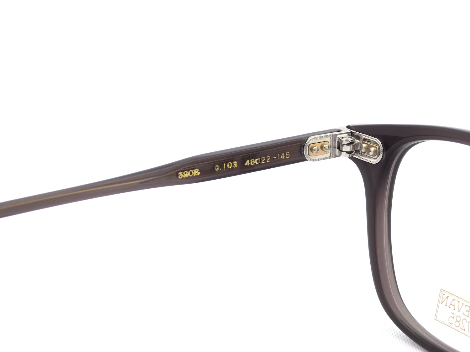 1950年代をイメージさせるスクエアウエリントンシェイプとして2018SSにデビューした「320」のリファインモデルで、オリジナルよりも3mm程度縦幅を抑え、名作「319」と比べて丸みを帯びたウェリントン型にアメリカンヴィンテージを想起させるキーホールブリッジを持つモデルです。