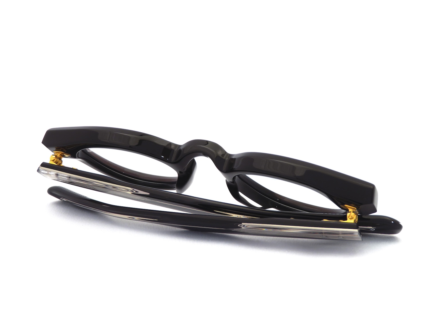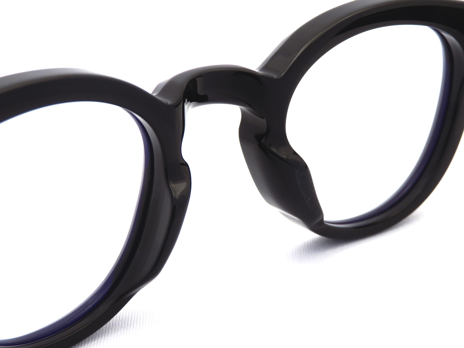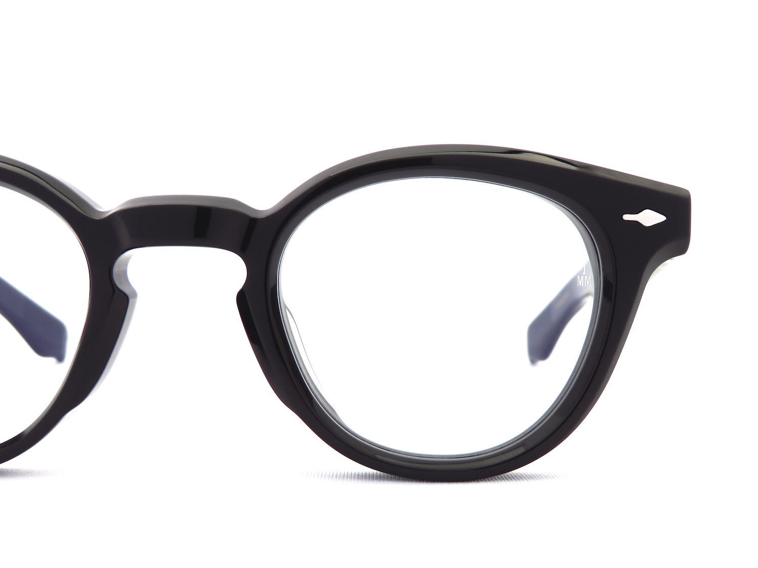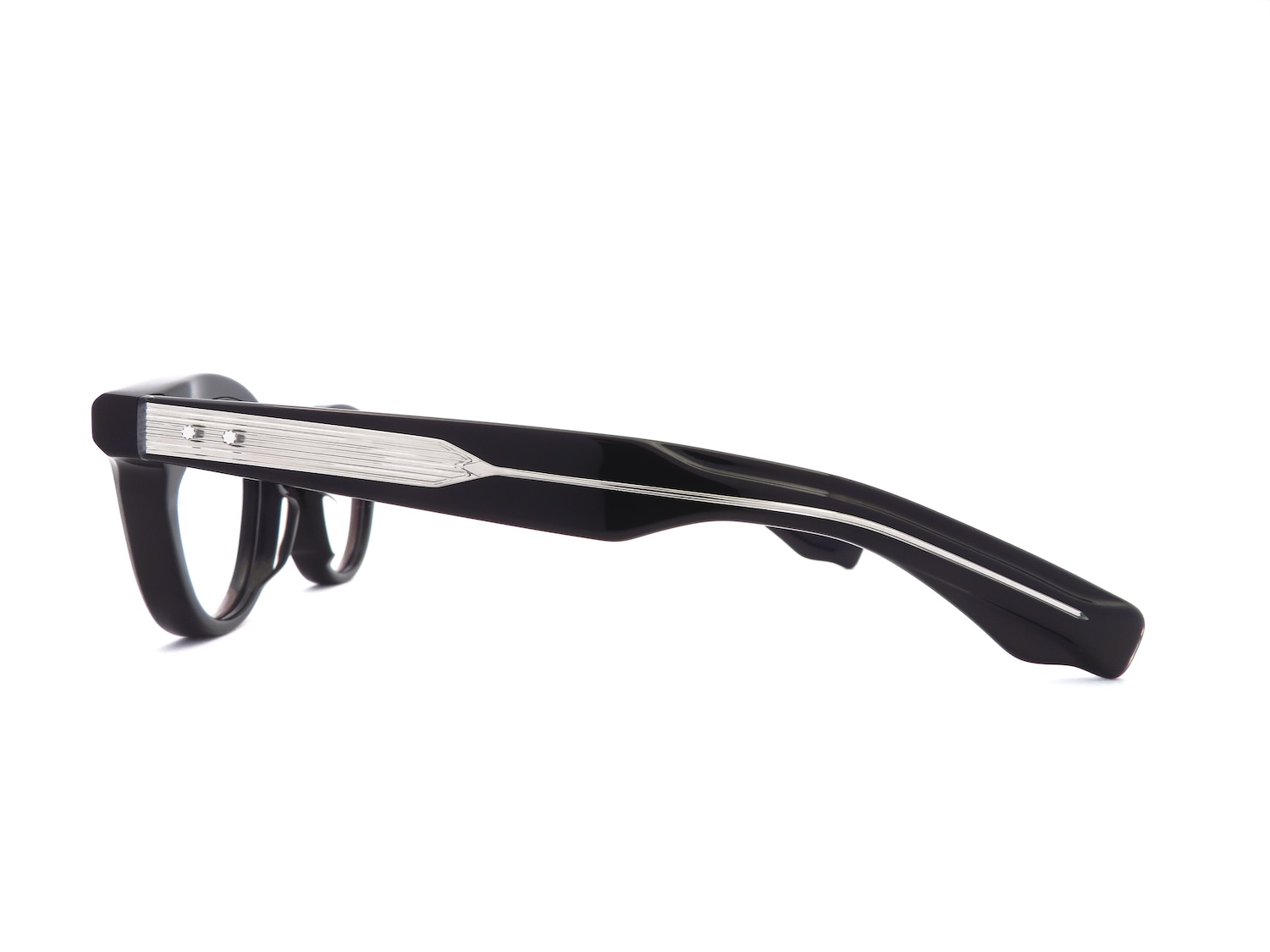 J.M.M特注の10mmアセテート生地を使用し、ブロウラインなどに大胆なカッティングをほどこすことで正面からの見かけはスッキリとした印象になりながらも角度を変えてサイドからはしっかりと存在感を放つ日常使いにも最適なデザインに仕上がっています。