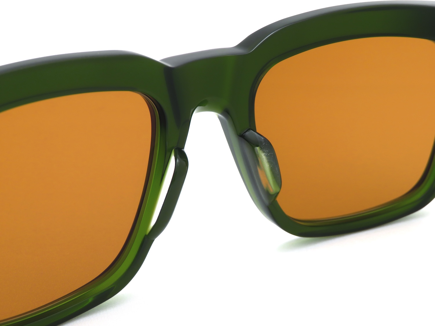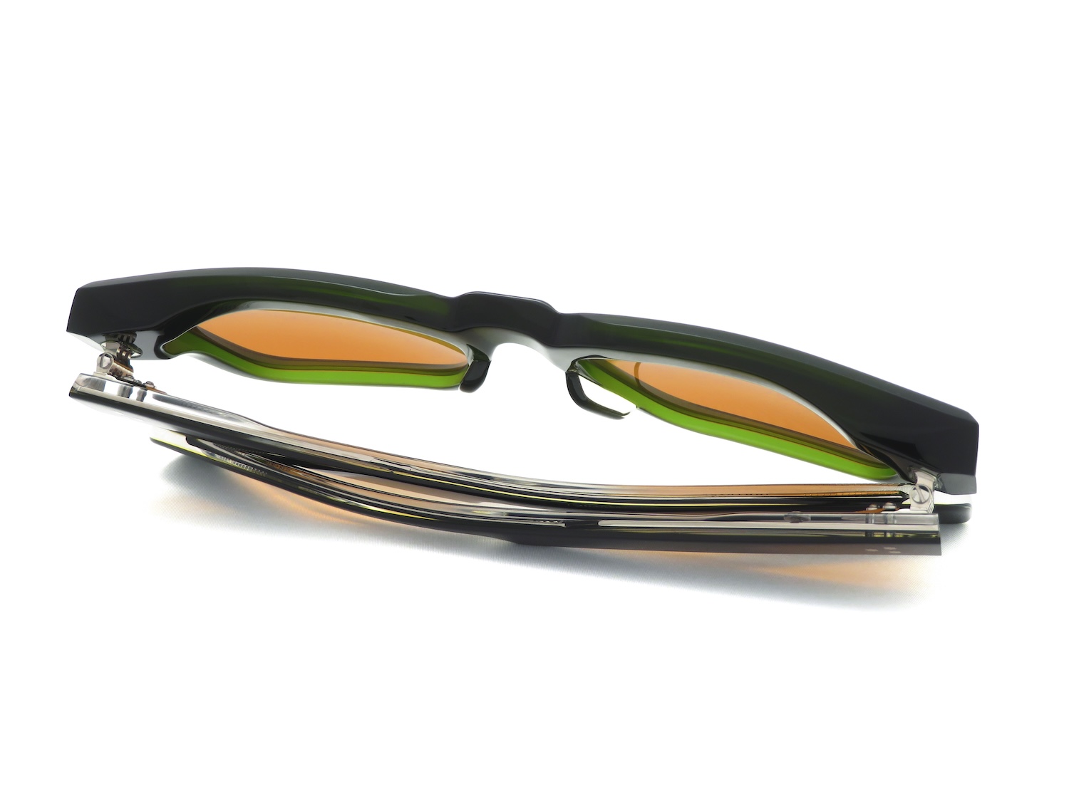 クセが少ないスクエアデザインながらも程よいサイズ感とボリュームや随所に見られるストレートラインとエッジを効かせたスタイルが特徴のモデルです。10mmのアセテートブロック生地のフロントトップ(ブロウ)ラインには僅かな斜めのカッティングを加えて表情に奥行きが出るところも魅力的です。