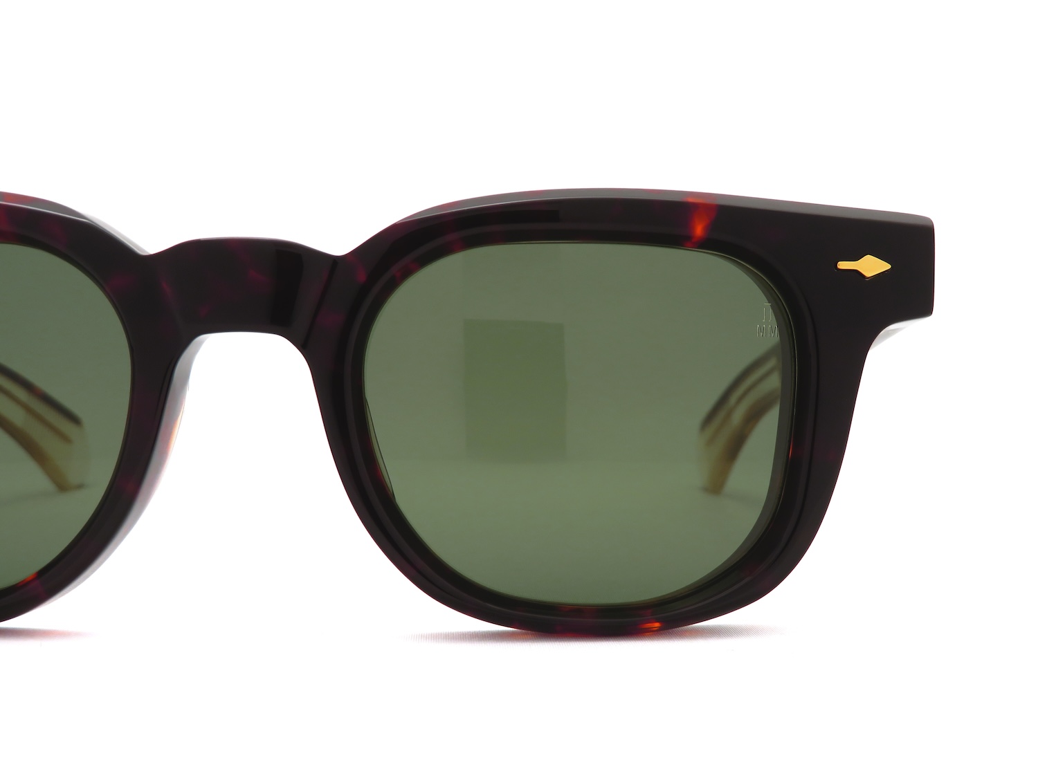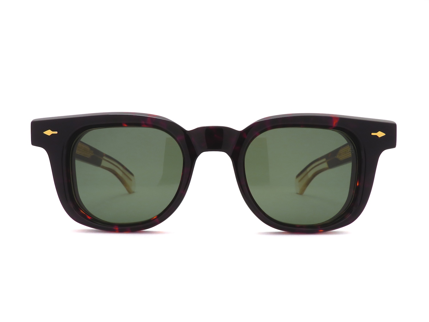 J.M.M特注の10mm厚アセテート生地のカッティングは見かけのキリッとした面を残しながらも全体的に丸みを与えるような絶妙な仕上げをほどこしたり、フロント・テンプルともにボリュームさはリデザインされても健在で、『VENDOME』よりはコンパクトで『JULIEN』よりシャープさを抑えられるというJ.M.Mの愛好家も1つは持っていたいモデルです。