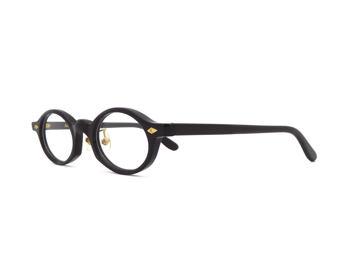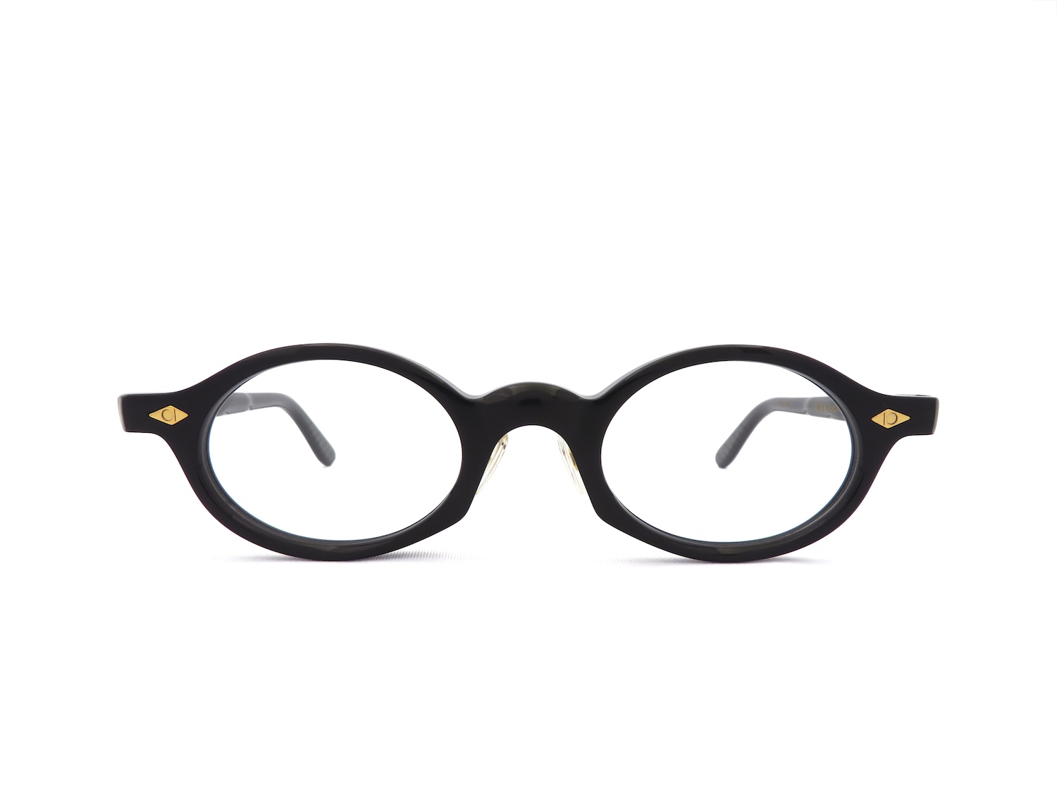 1990年代のメタルフレームが持つようなミニマルなオーバルレンズシェイプにヴィンテージフレームが持つようなホーンリム(角のように突き出したヨロイのデザイン)を備え、リムラインにも繊細な曲線と直線を組み合わせることでクラシックさと同時にエレガンスさや大胆さを表現したモデルです。