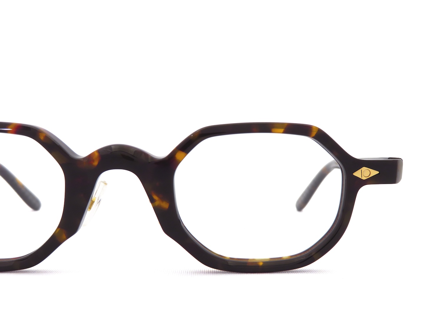 ミニマルでややレクタングルチックなオクタゴン(八角形)シェイプをベースに下リムは適度な丸みを与えて顔馴染みの良い多角形スタイルを提案したシンプルかつ遊び心もしっかりと感じられるモデルです。