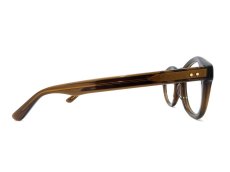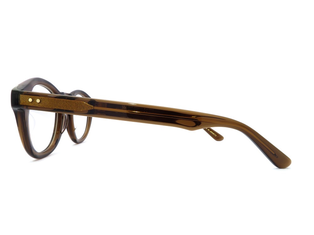 カラーは【Whiskey】。絶妙なダークトーンの濃度が縁感を与えるクリアブラウンカラーです。ヴィンテージフレームのような味わい深い雰囲気をかもし出します。