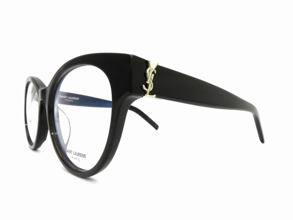 大きめのキャットアイが特徴のフレームです。リムデザインや智(ヨロイ)のボリューム感やエッジのあるカッティングで洗練されたアイテムです。また、サンローランのシグネチャーとして有名な"YSLロゴ"を繊細なディティールとともにテンプルに施すことでファッション性も高くおすすめのスタイルです。